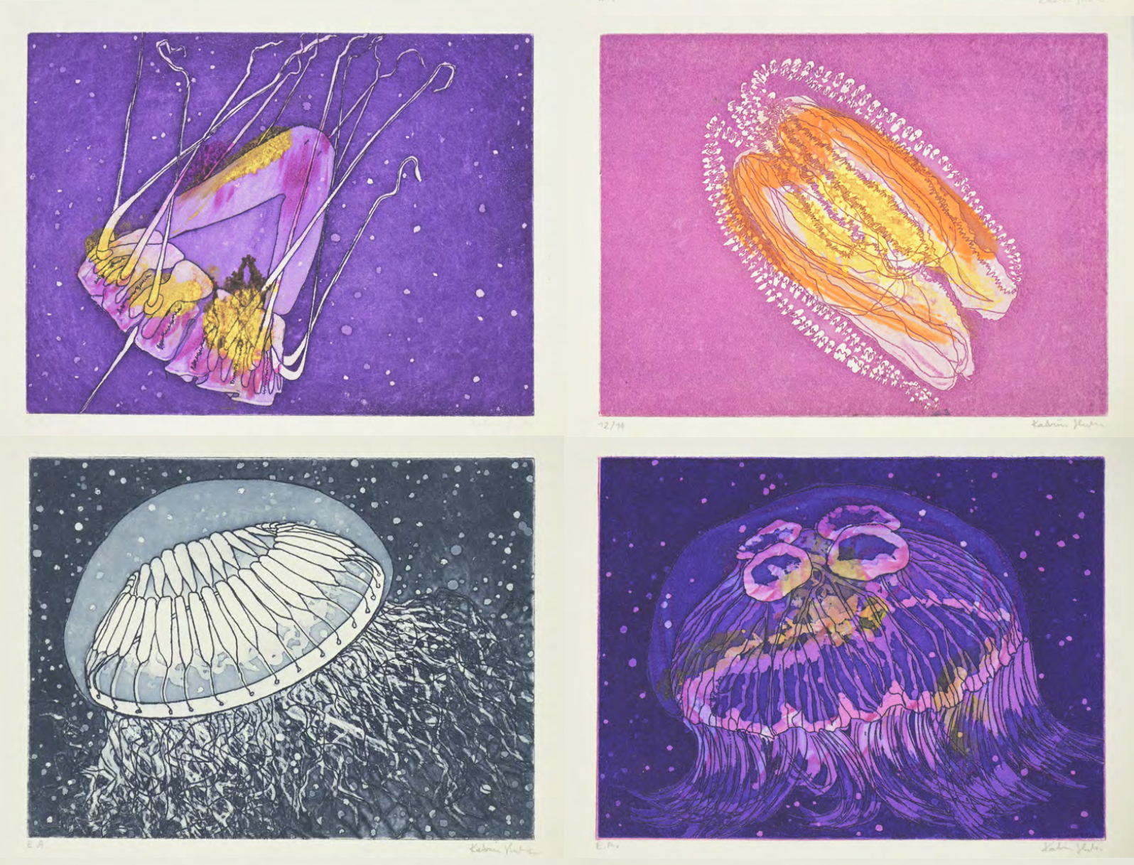 Edition ‘keine Fische‘, 2024 Auflage II 11 Strichätzungen und Aquatinta mit je 14,8 x 19,5 cm auf Hahnemühle 230 g/m2, Grafische Werkstatt Salzburg |