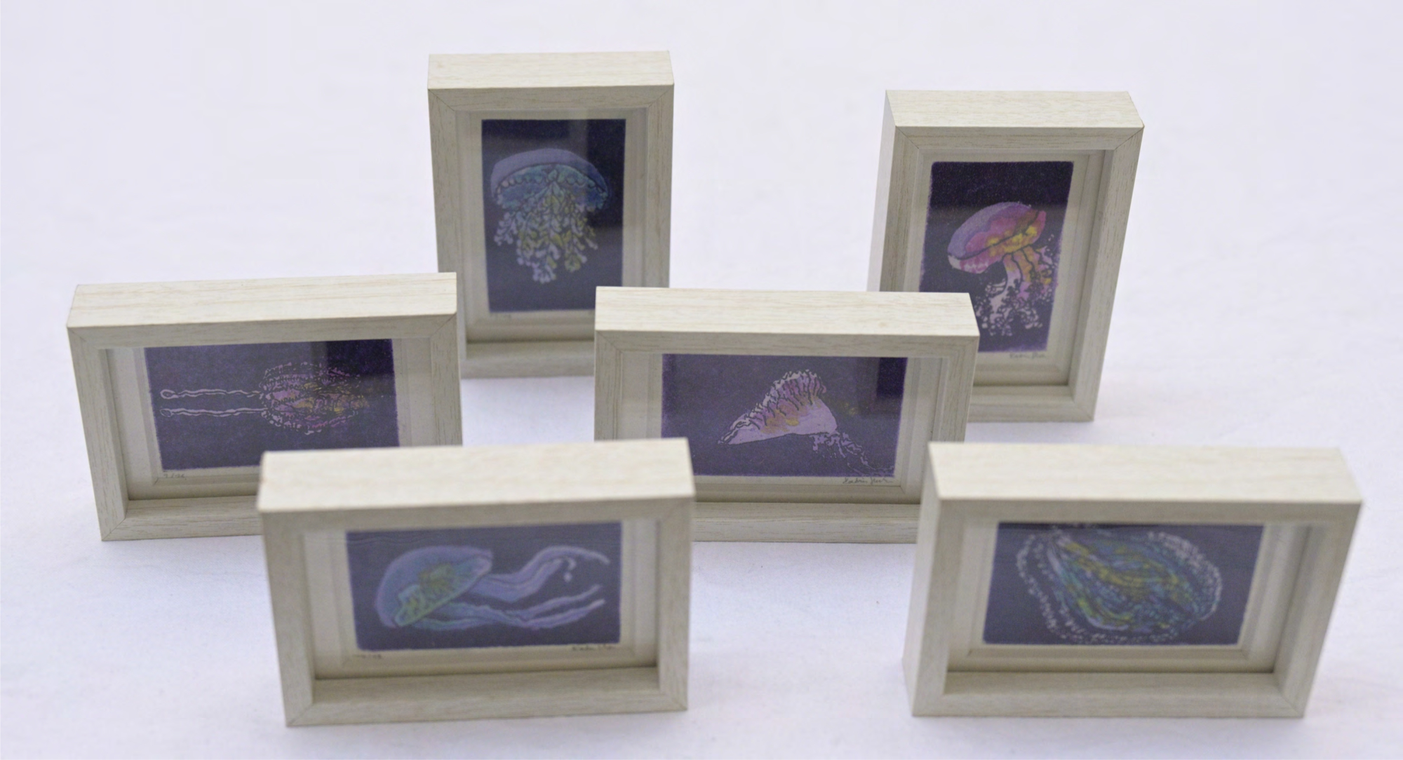 ‘Zwutschgerl‘, 2024 6 dreifärbige Strichätzungen und Aquatinta je 5,4 x 3,4 cm auf Hahnemühle 230 g/m2, Auflage 16 - 19 + 9 E.A. Grafische Werkstatt Salzburg |