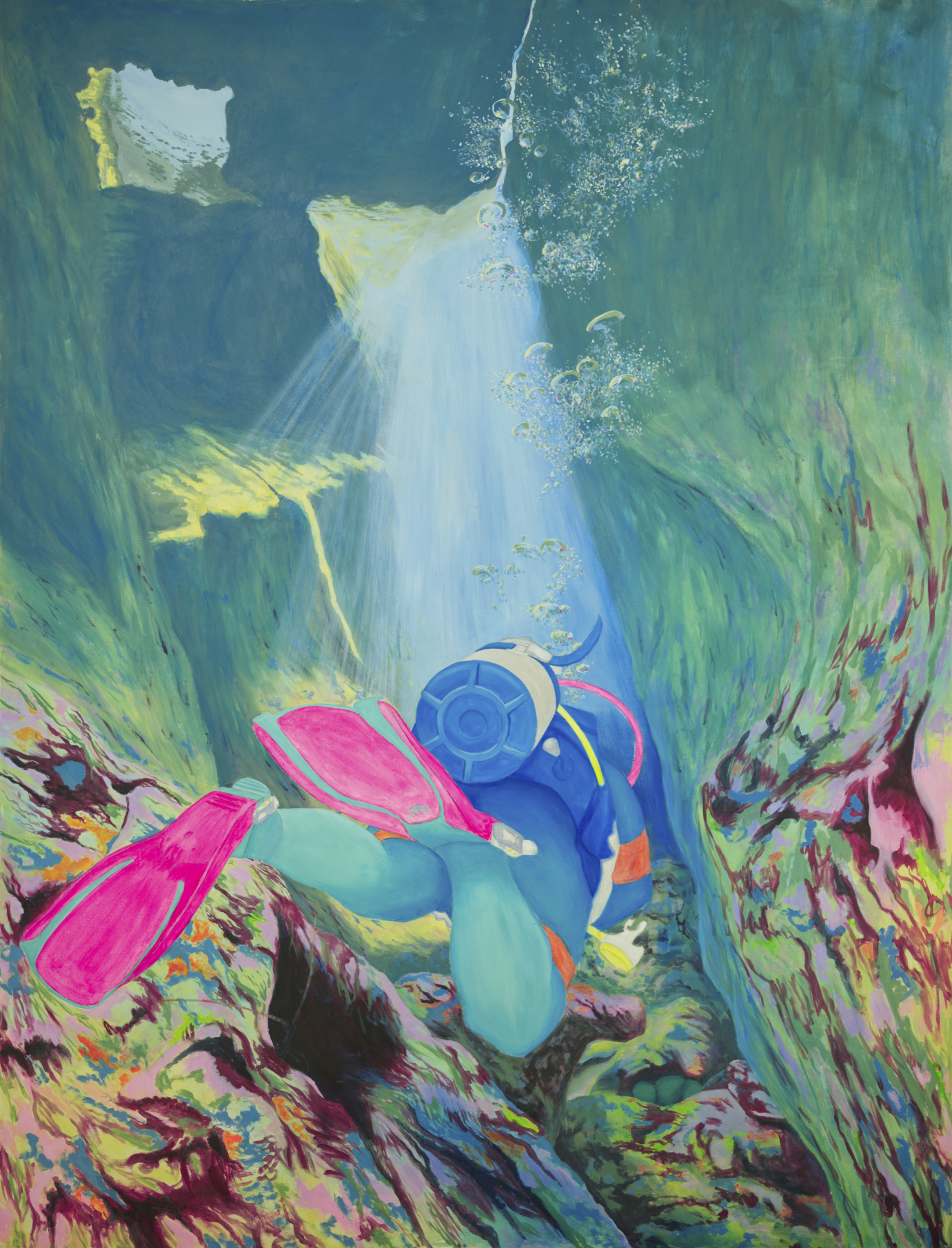 Die Freiwasserschwimmerin Teil2, 2019200 x 410 cm, Acryl auf Baumwolle |